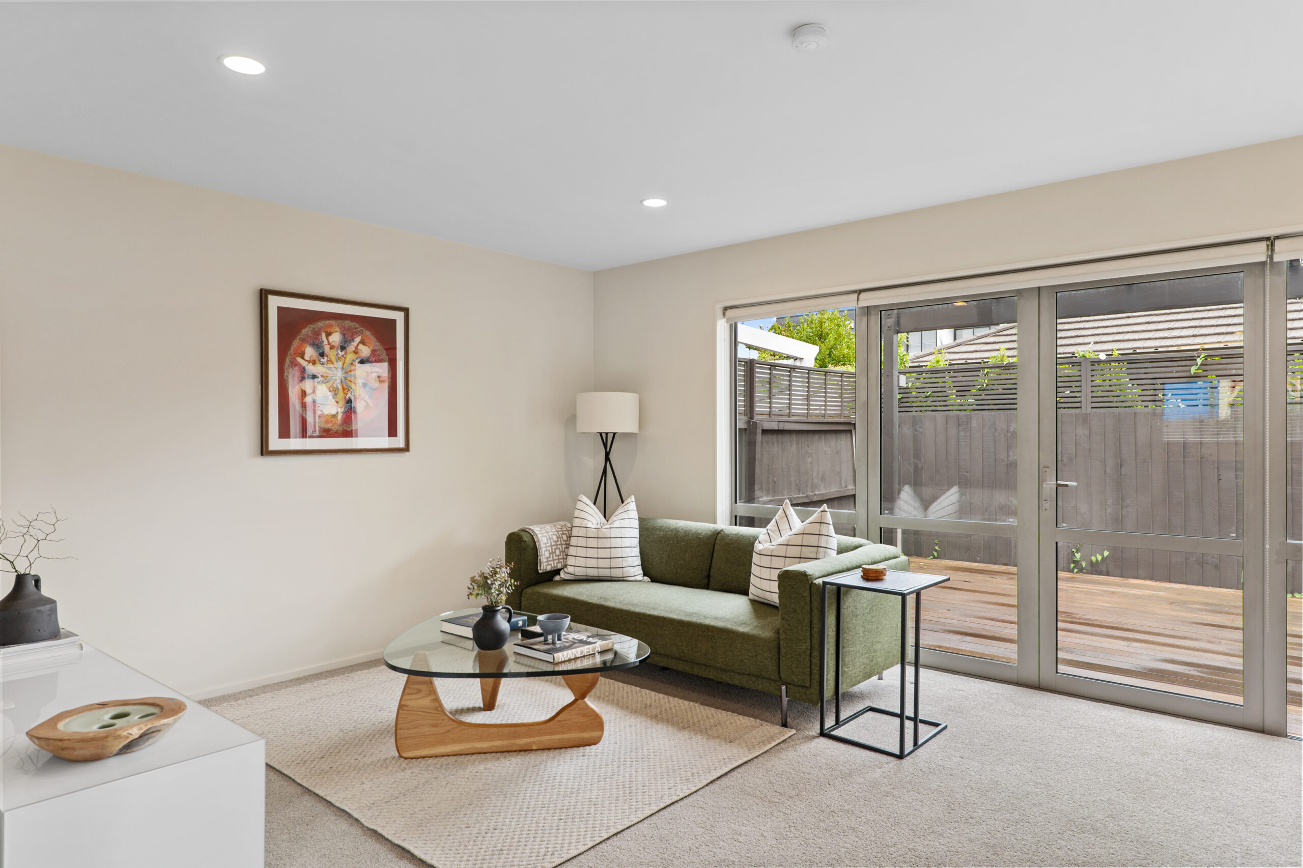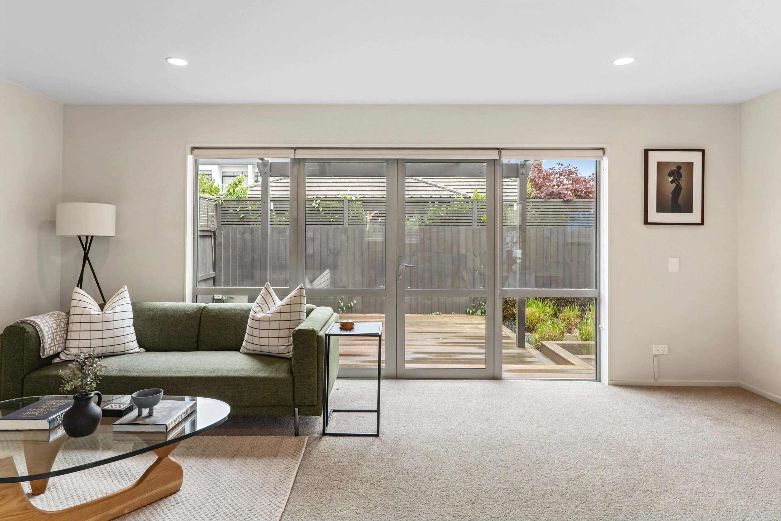 Completed post-quake and designed by Russell Devlin at Solarchitect, this front-row townhouse leads a line of five, securing ease of access and the advantage of a private courtyard.