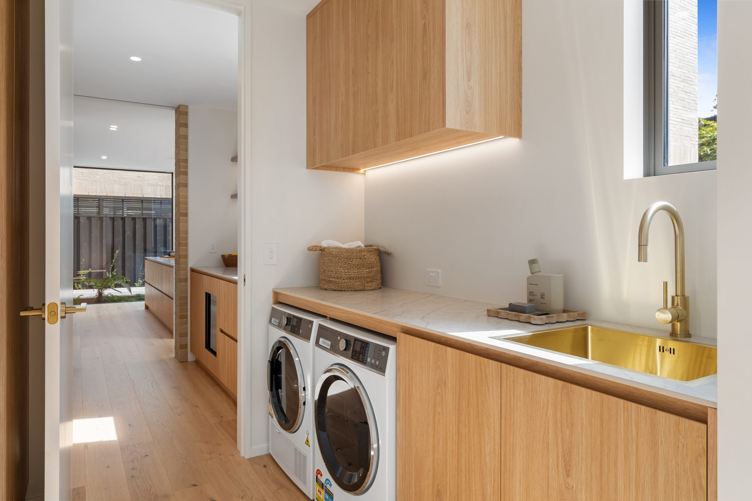 Comfort has been carefully considered with hydronic in-slab heating, a gas fireplace and fully ducted air conditioning, alongside generous storage integrated throughout the home.