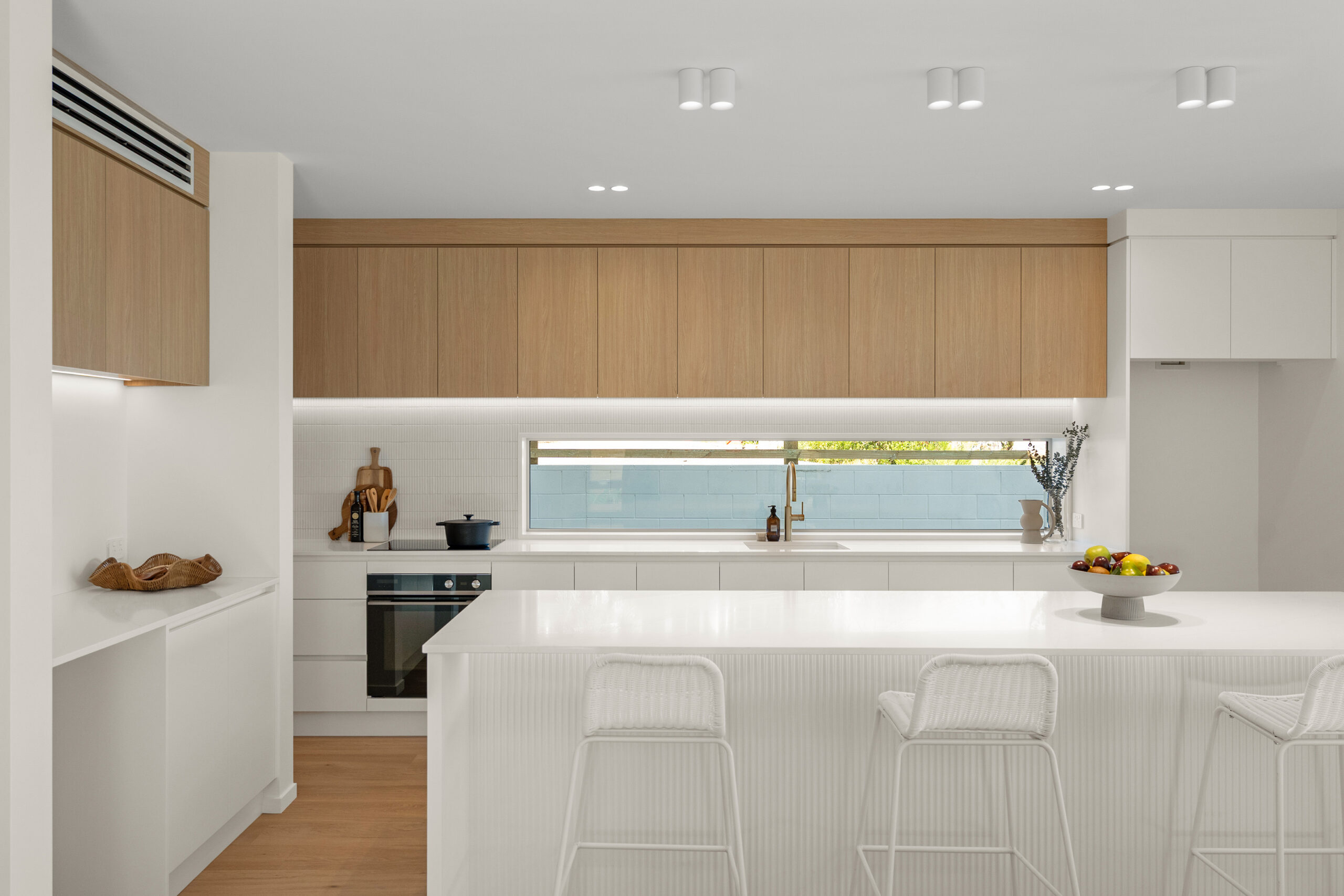 The ground floor centres around a sweeping kitchen and open-plan living domain, oriented directly to the reserve to ensure the landscape remains the focal point.