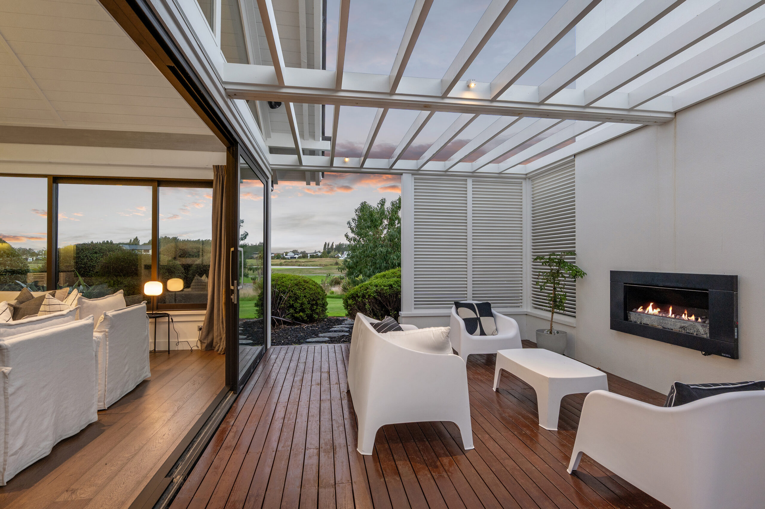 Outdoor living unfolds in every direction and caters to every mood and moment, led by a screened terrace with an outdoor fire for gatherings that stretch long into the night, alongside a sunlit deck and a sheltered terrace that captures a relaxed outlook across the golf course.