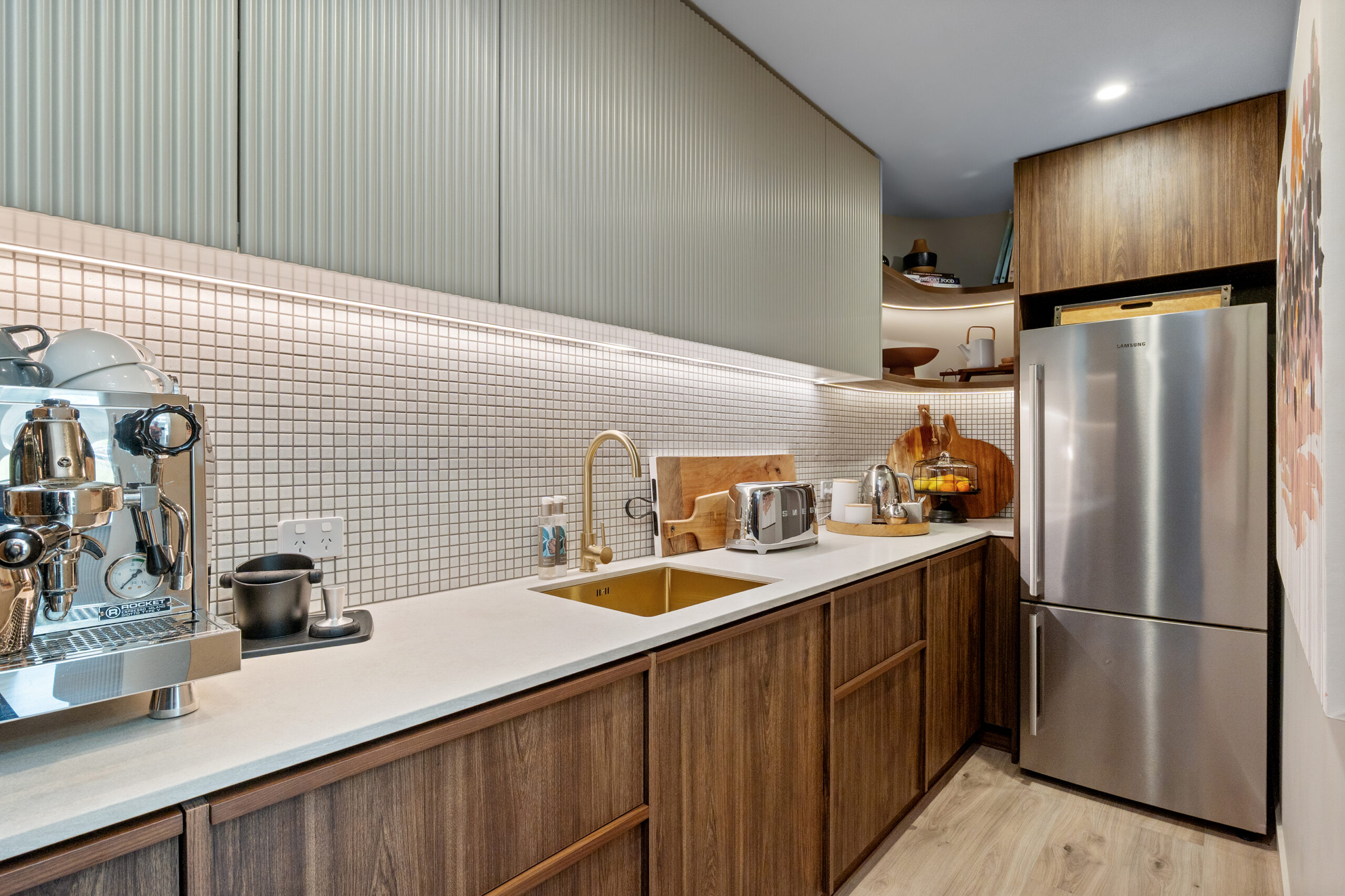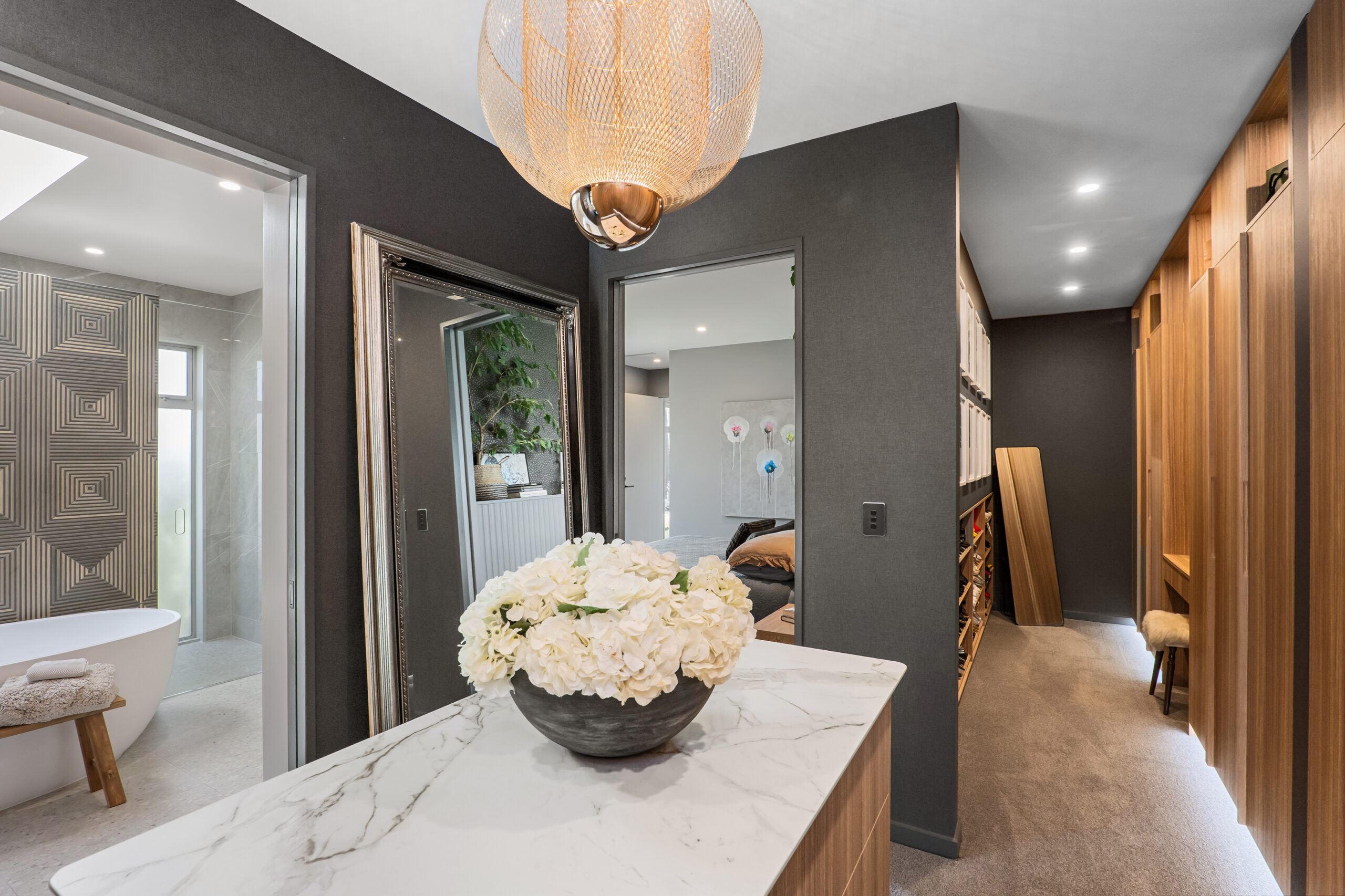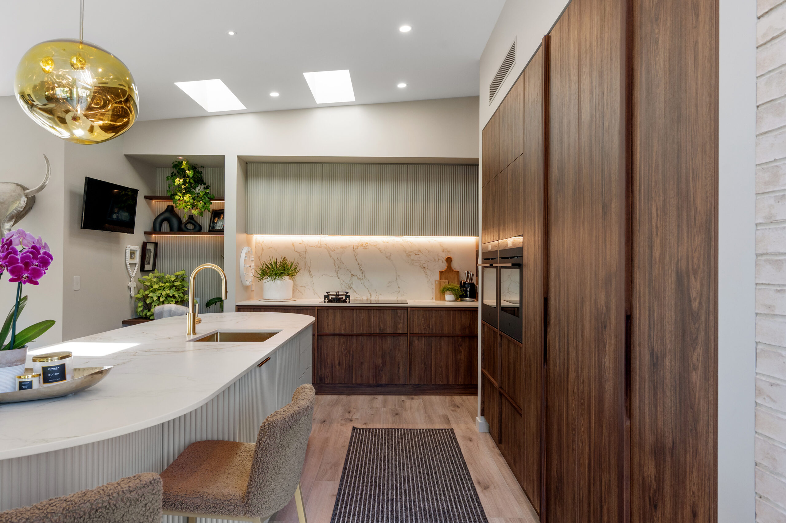 Aesthetic excellence continues throughout, where a 3.35m stud height amplifies the entrance, a sunken lounge brings a mid-century mood, and a sublime master suite showcases a spectacular dressing room and skylit en-suite, where a geometric tiled wall becomes a defining design moment.