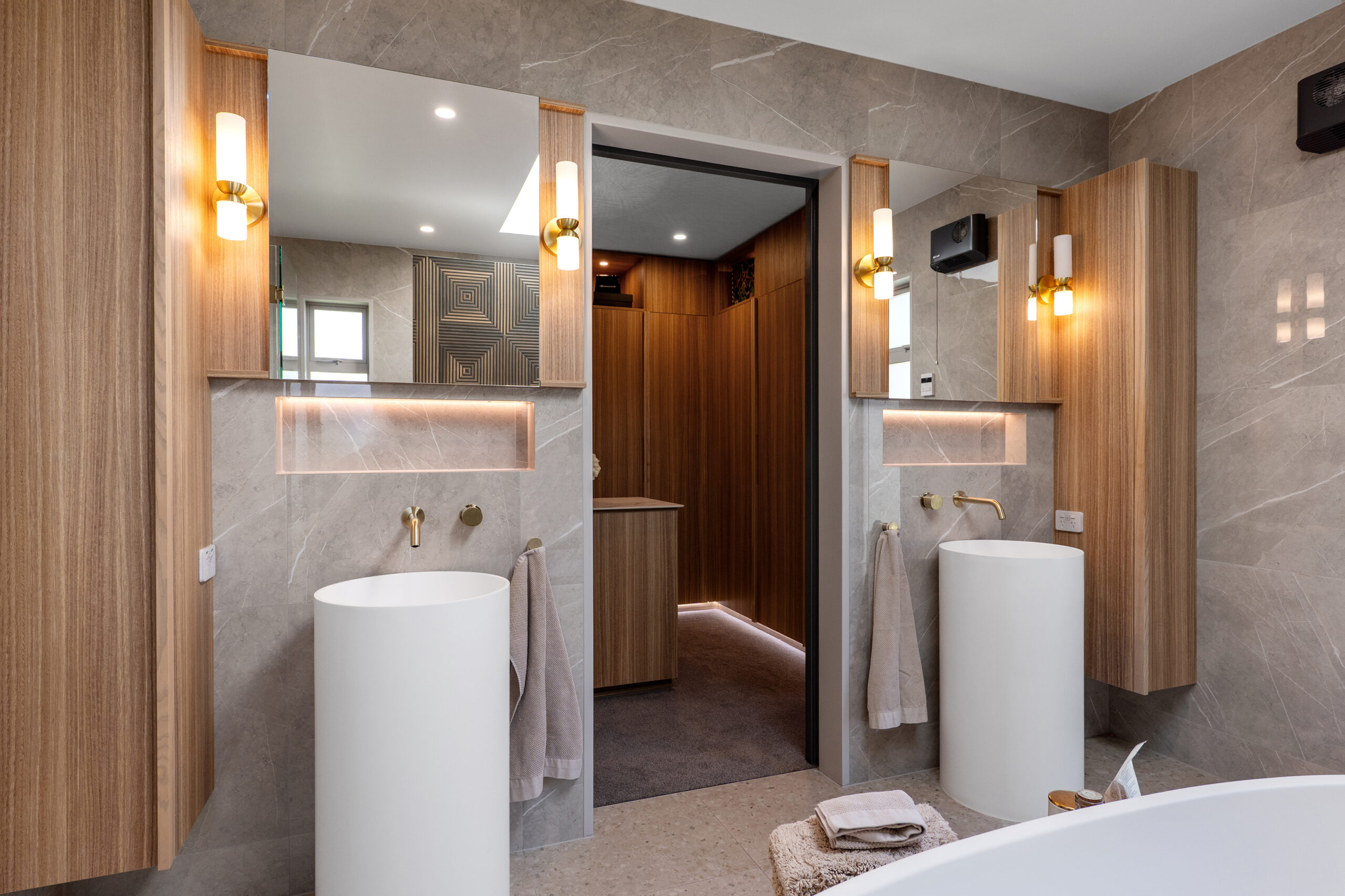 Comfort and calibre converge through zoned climate control, underfloor bathroom heating, thermally broken Low-E glazing, a seamless triple-car garage and ABI brass tapware, sinks and fittings, all pointing to a specification a step above.