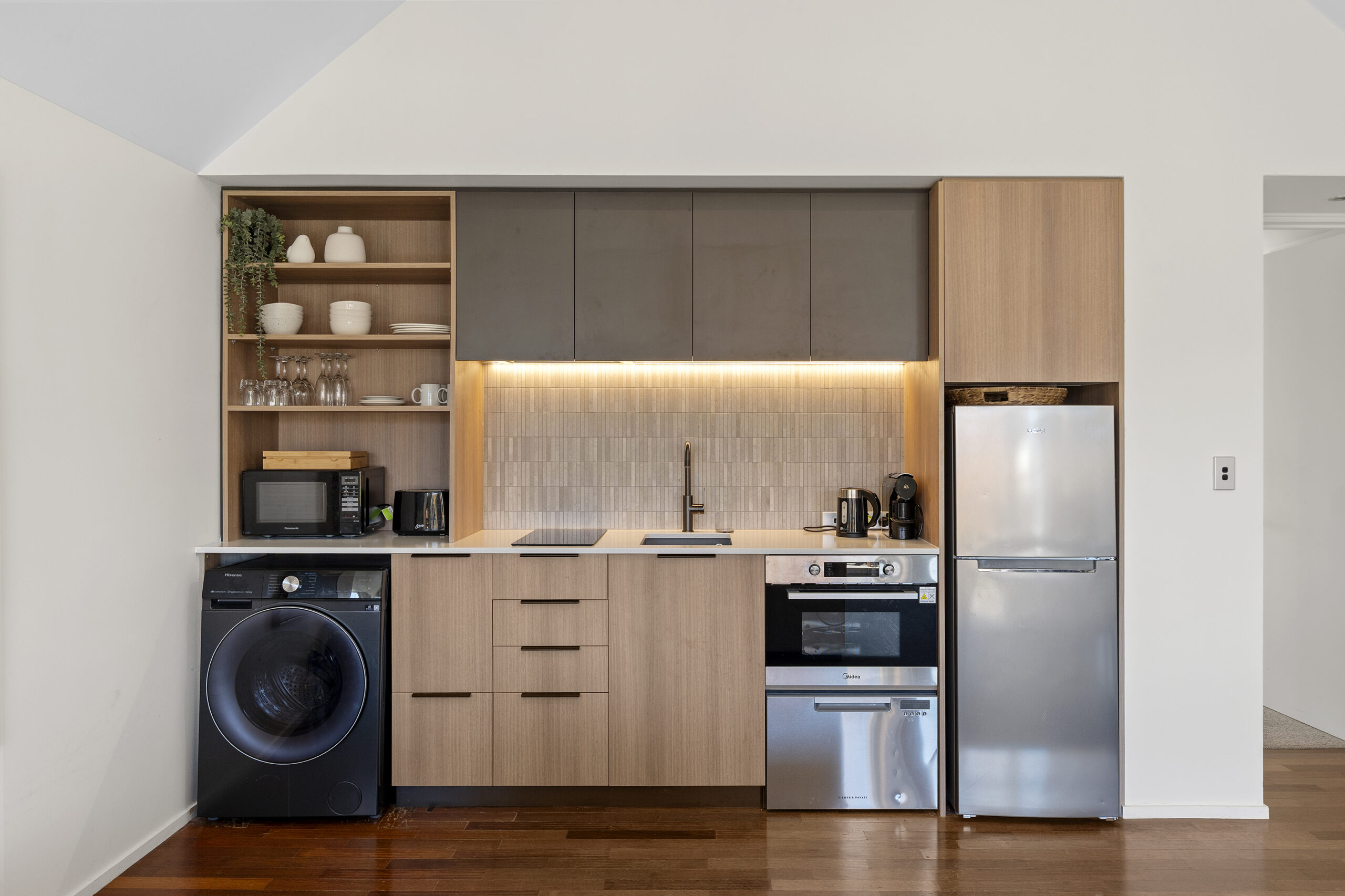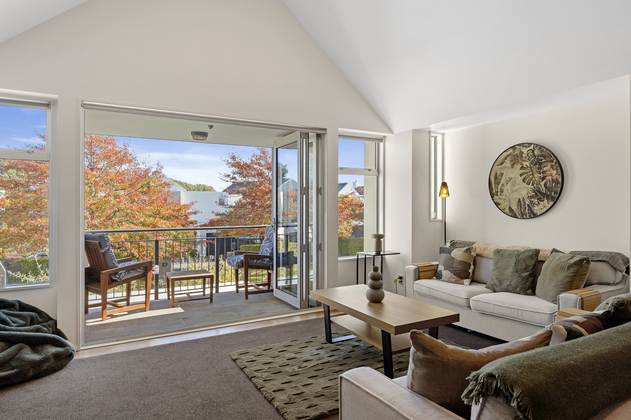 Elevated on the top floor for the best of the lake outlook, the 64sqm (approx) floor plan opens to an open-plan living zone beneath a cathedral ceiling, creating a stronger sense of space from the outset.